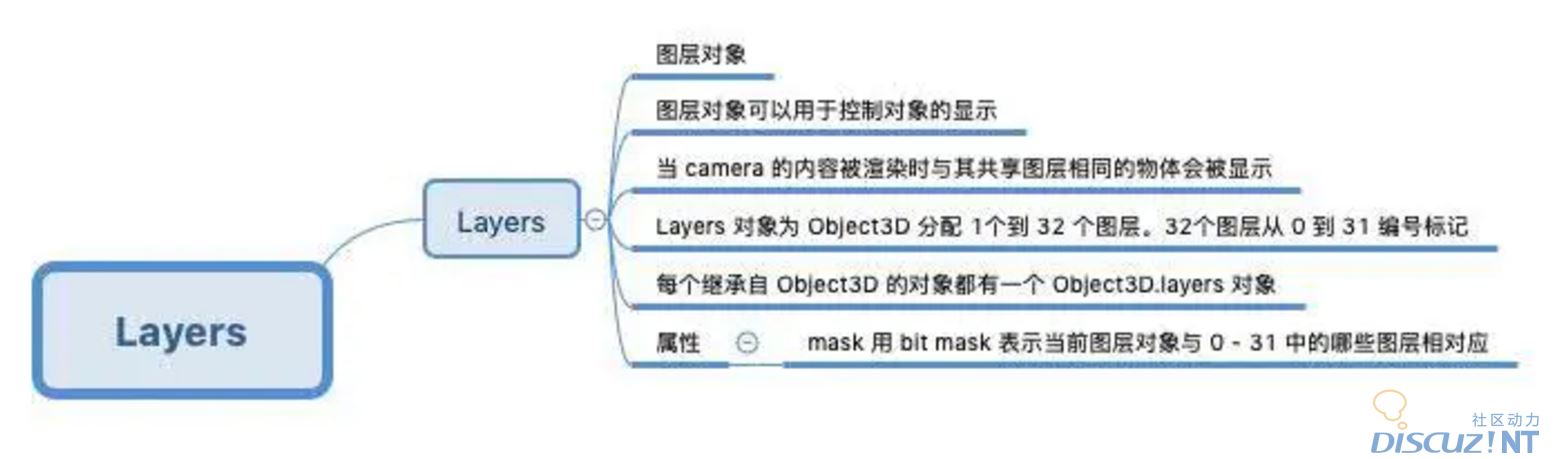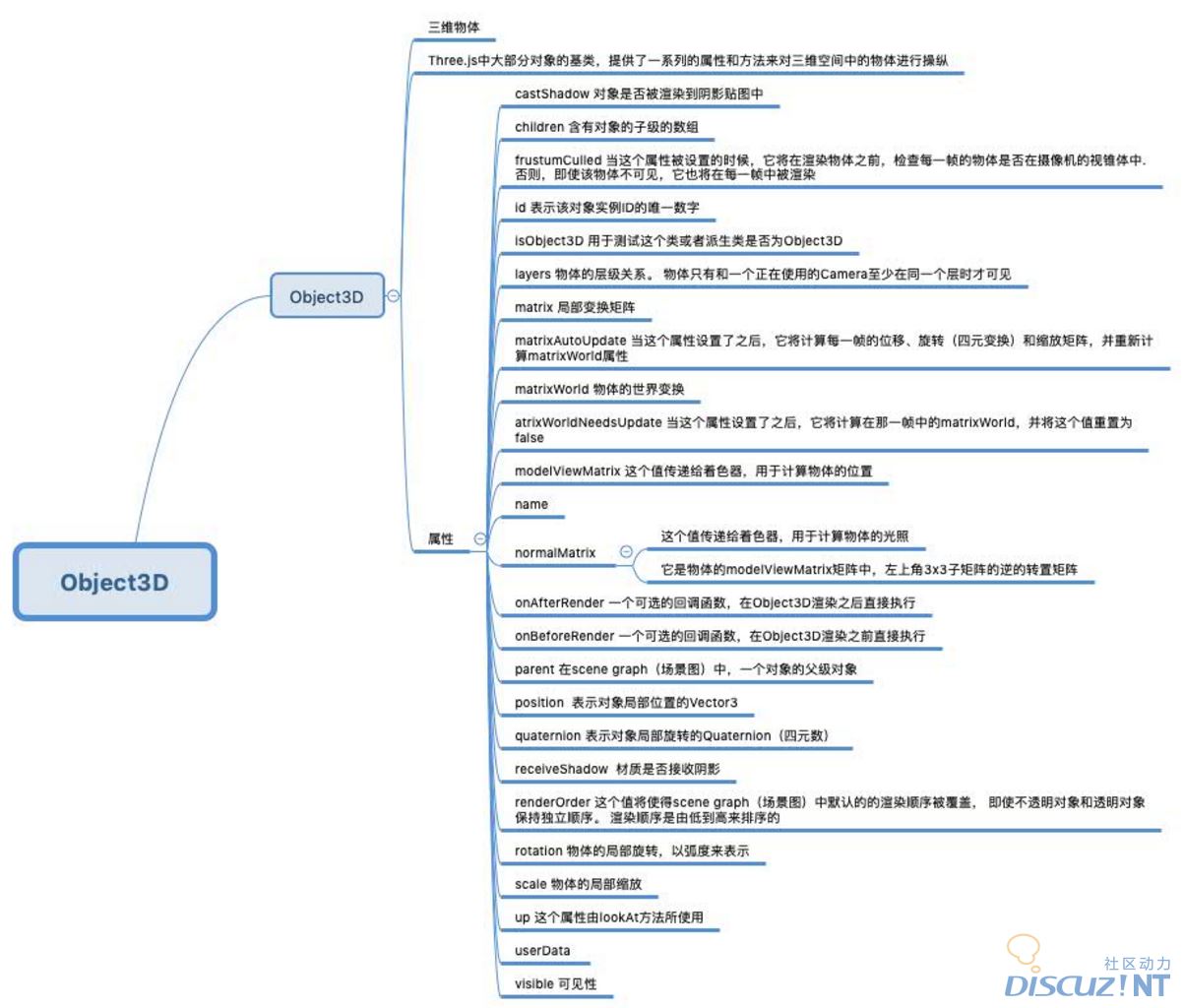 Object3D 是 ThreeJs 中对物体抽象的基类,包括相机和灯光都是 Object3D 的子类。一般情况下,我们不会直接使用这个类,对于构造物体,一般我们都是使用的 Mesh。
